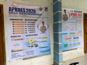 Maka berdasarkan hal tersebut, Pemerintah Desa Kedungbendo melakukan pemasangan Benner / Baliho yang memuat kondisi anggaran desa, sebagai wujud transparansi Desa dalam pengelolaan keuangan desa.